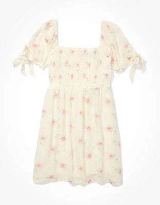AE Floral Tie-Sleeve Smocked Mini Dress