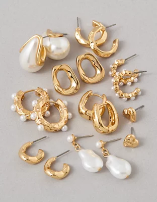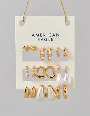 AEO Pearl & Gold Earrings 9-Pack