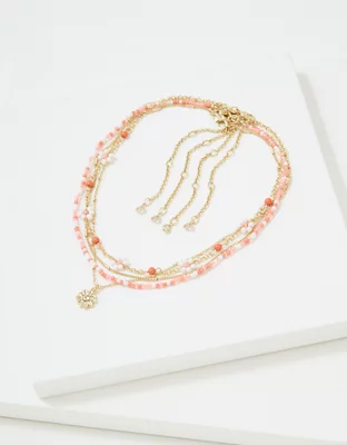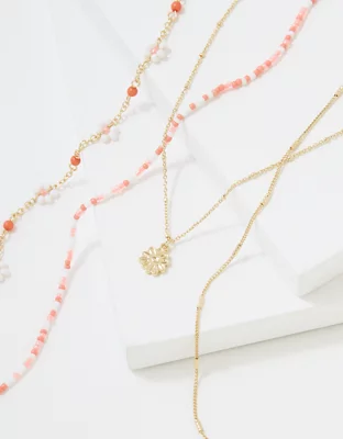 AEO Coral Daisy Beaded Necklace 4-Pack