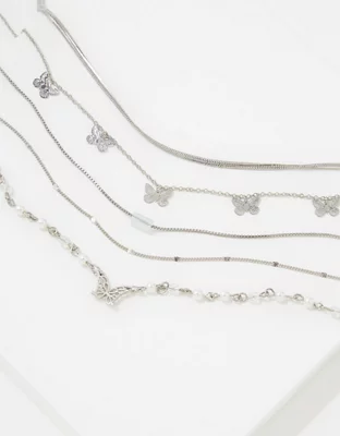 AEO Silver Butterfly Choker Necklace 5-Pack