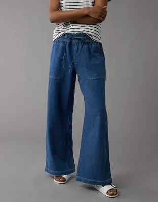 AE Dreamy Drape Linen-Blend Pull-On Pant