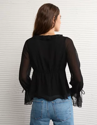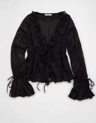 AE Chiffon Tie-Front Blouse