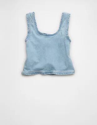 AE Cropped Ruffle Trim Denim Tank Top