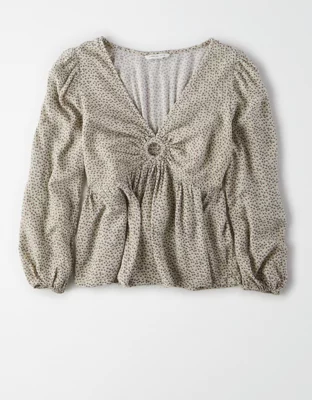 AE Long Sleeve Ring Front Babydoll Top