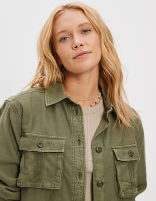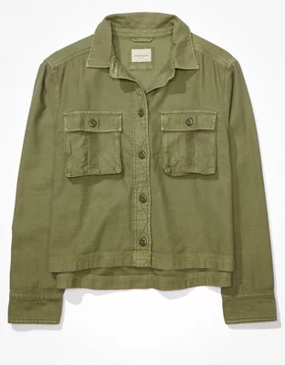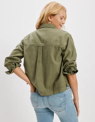 AE Cropped Long-Sleeve Cargo Button-Up Shirt