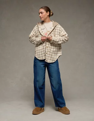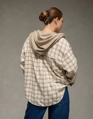 AE Plaid Hooded Button-Up Shirt