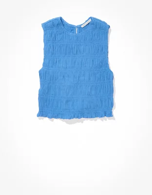 AE Cropped Smocked High-Neck Tank Top