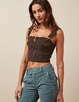AE Cropped Zip-Front Cargo Tank Top