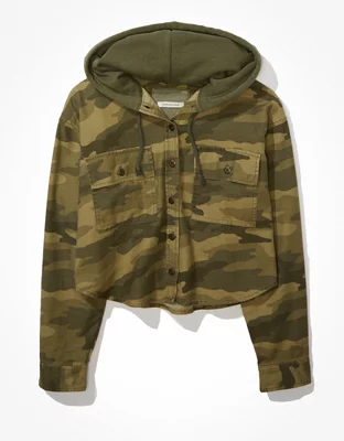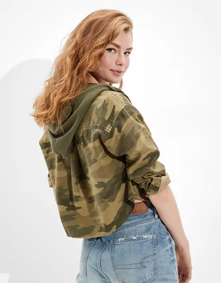 AE Camo Cropped Hooded Shirt