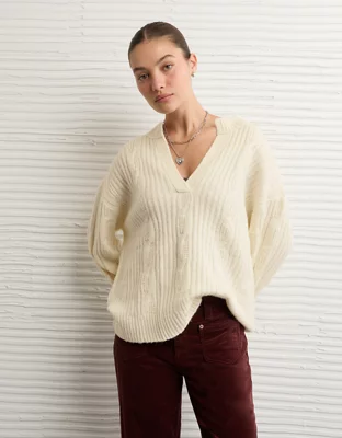 AE Whoa So Soft Notch Neck Cable Sweater