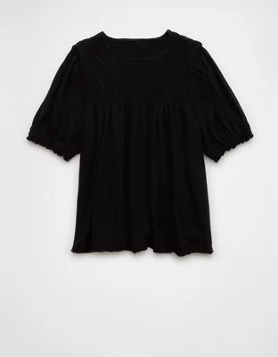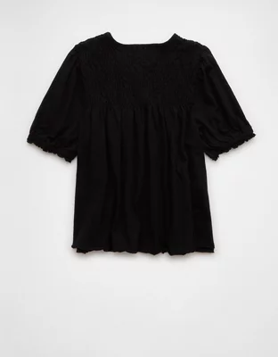 AE Sunchaser Knit Puff Sleeve Smocked T-Shirt