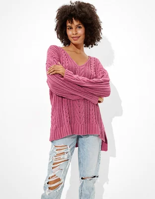 AE Cable Knit V-Neck Sweater