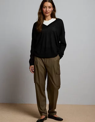 AE77 Premium Slinky Deep V-Neck Sweater