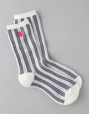 AE Embroidered Striped Crew Socks