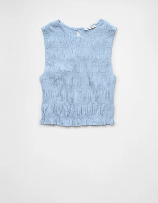 AE Cropped Smocked High-Neck Tank Top