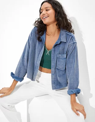 AE Cropped Corduroy Button-Up Shirt