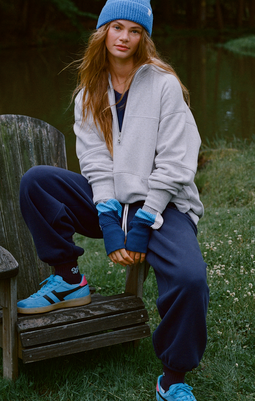 We’re also totally obsessed with our joggers and sweatpants! Our OTT Fleece is everything. That’s Over The Top Fleece, and it’s amazing. OTT Fleece is next level soft and has spandex in it (so it moves with you). All of our fabrics are made for movement—even our sweatshirts and joggers. Soft and cozy meets getting moving! Check out OFFLINE sports bras to build the best gym outfit!
