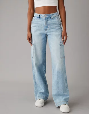 AE Dreamy Drape Stretch Super High-Waisted Cargo Baggy Wide-Leg Jean