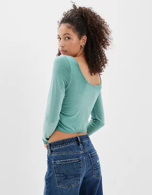 AE Long-Sleeve Soft & Sexy Ruched T-Shirt