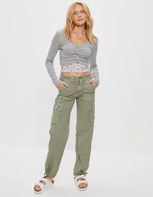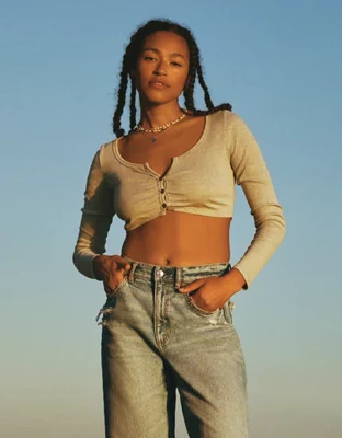 AE Long-Sleeve Button-Up Cinch Tee