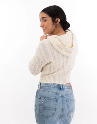 AE Cropped Cable Knit Zip-Up Sweater