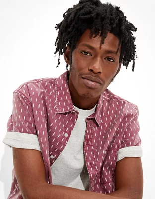 AE Printed Short-Sleeve Button-Up Shirt
