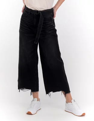 Super high-waisted fit (up top), loose through the thigh & a wide straight leg