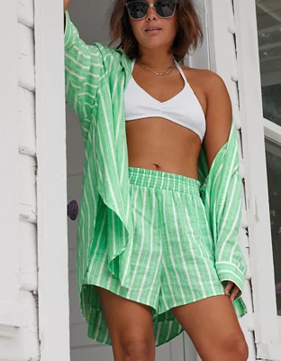 Aerie Linen Blend High Waisted Short