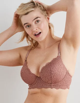 Aerie Real Power Plunge Push Up Eyelash Lace Bra