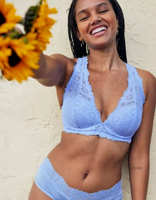 Aerie Real Power Wireless Push Up Sunflower Lace Bra