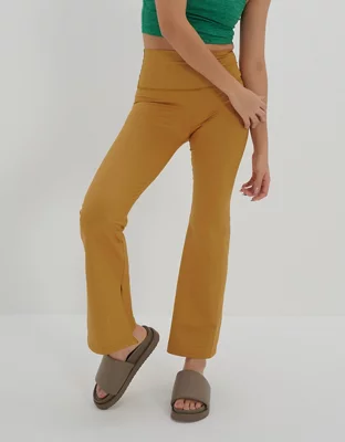 OFFLINE By Aerie The Hugger Coated Crop Slit Flare Legging