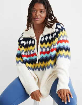 Aerie Fairisle Quarter Zip Sweater