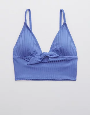 Aerie Ribbed Shine Longline Tie Front Triangle Bikini Top