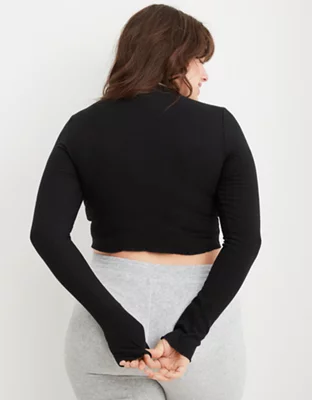 Aerie Long Sleeve Cropped Mock Neck T-Shirt
