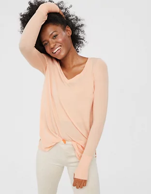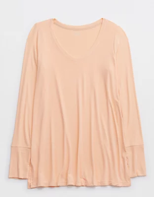 OFFLINE By Aerie Thumbs Up Jersey Long Sleeve V-Neck T-Shirt