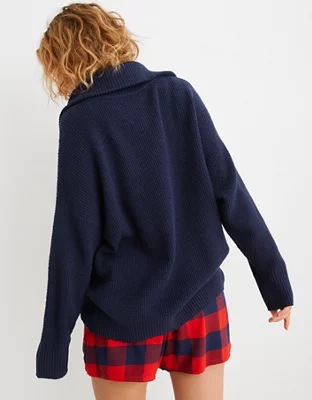 Aerie CozyUp Waffle Quarter Zip Sweater