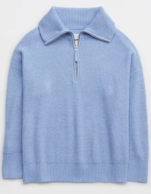Aerie CozyUp Waffle Quarter Zip Sweater