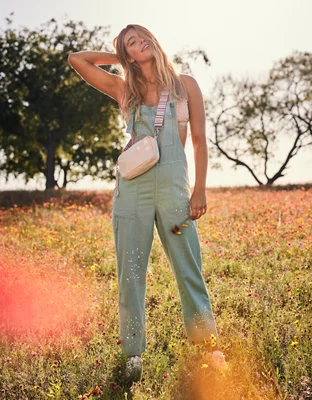 Aerie Werk & Play Twill Paint Splatter Overalls