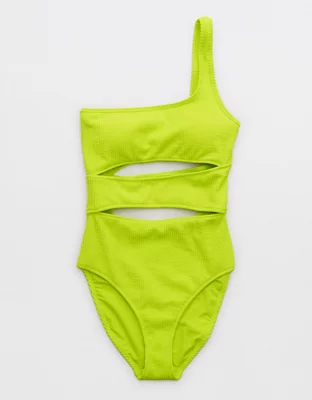 Aerie Crinkle Cut Out One Shoulder One Piece Swimsuit