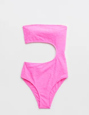 Aerie Terry Cut Out Strapless One Piece Swimsuit