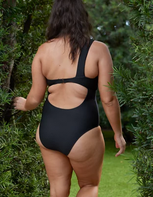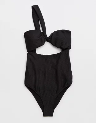 Aerie Jacquard One Shoulder Bandeau One Piece Swimsuit