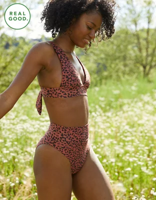 Aerie Leopard High Cut Cheeky Bikini Bottom