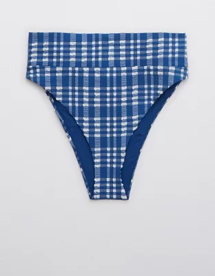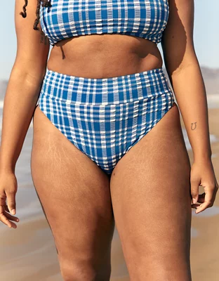 Aerie Plaid High Cut Cheeky Bikini Bottom