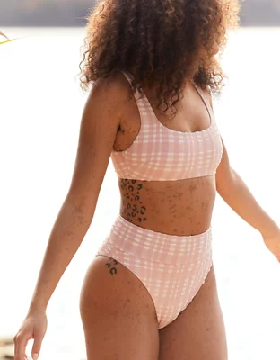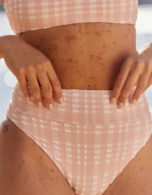 Aerie Plaid High Cut Cheeky Bikini Bottom