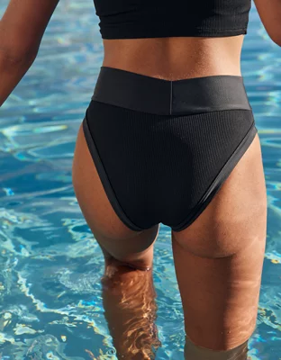 Aerie Ribbed Mix Crossover High Cut Cheeky Bikini Bottom