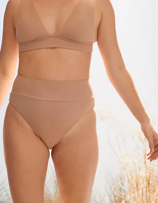 Aerie Waffle High Cut Cheeky Bikini Bottom