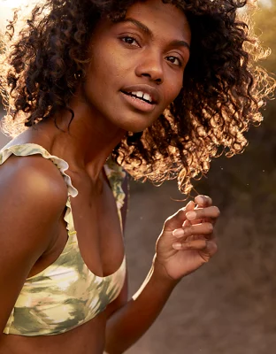 Aerie Printed Ruffle Scoop Bikini Top