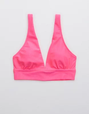 Aerie Ribbed Shine Plunge Longline Triangle Bikini Top