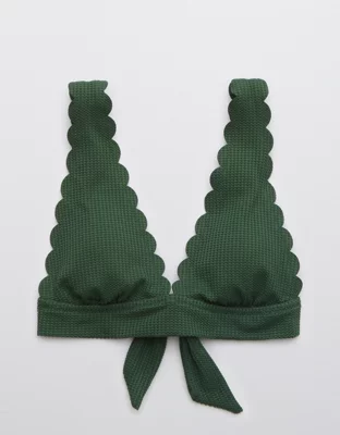 Aerie Waffle Scalloped Tie Longline Triangle Bikini Top