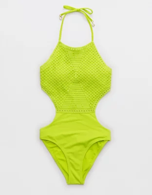 Aerie Crochet Halter One Piece Swimsuit
